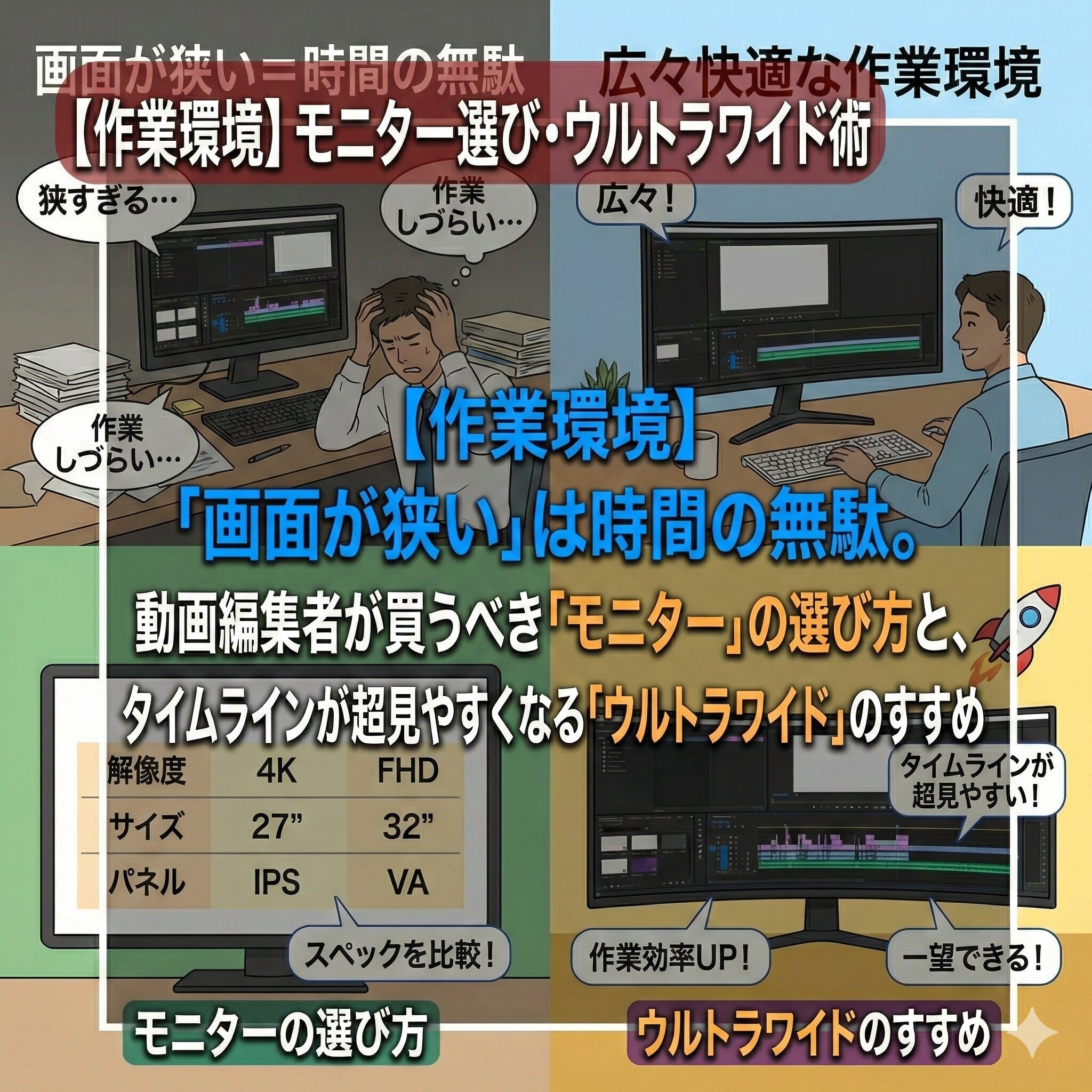はじめに 「動画編集が終わらない…」「もっとサクサク進めたい」と悩んでいませんか?動画編集は、こだわればこだわるほど時間が溶けていく作業です。しかし、プロの編集者は「手を抜く」のではなく「無駄を省く」 ...