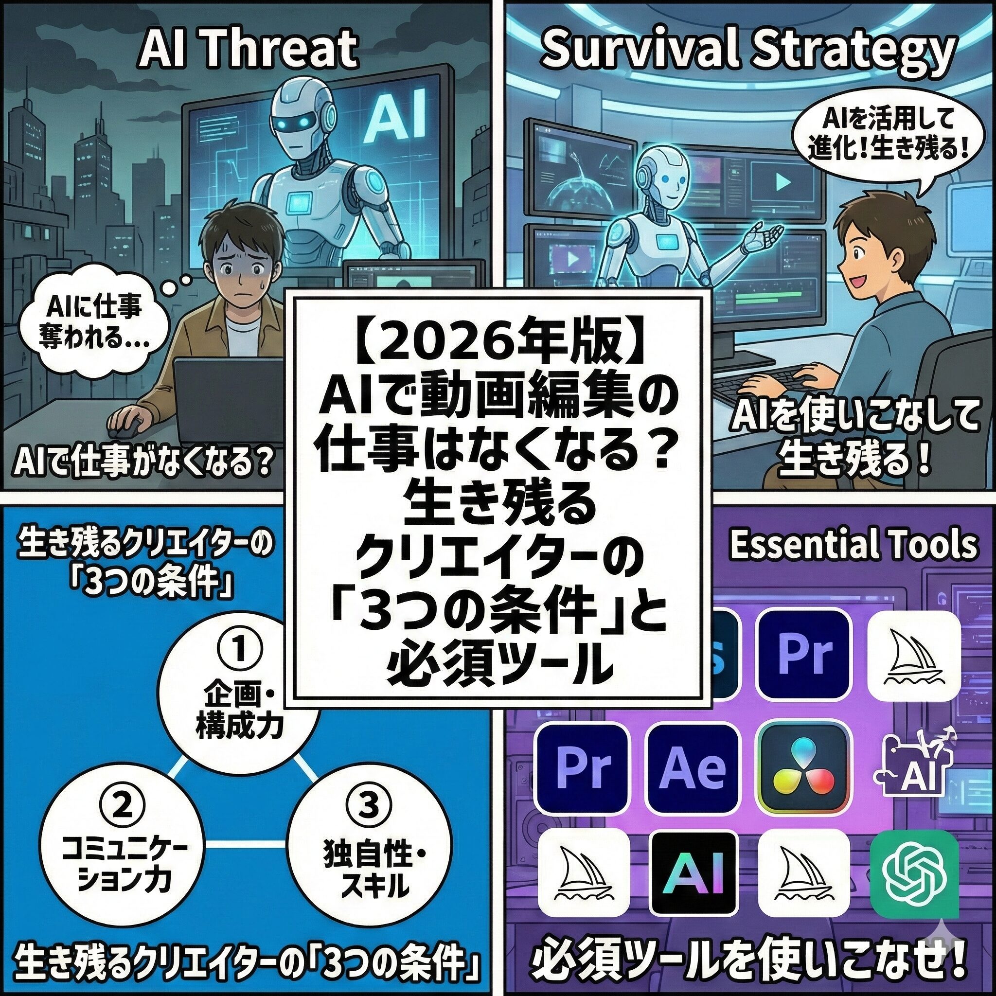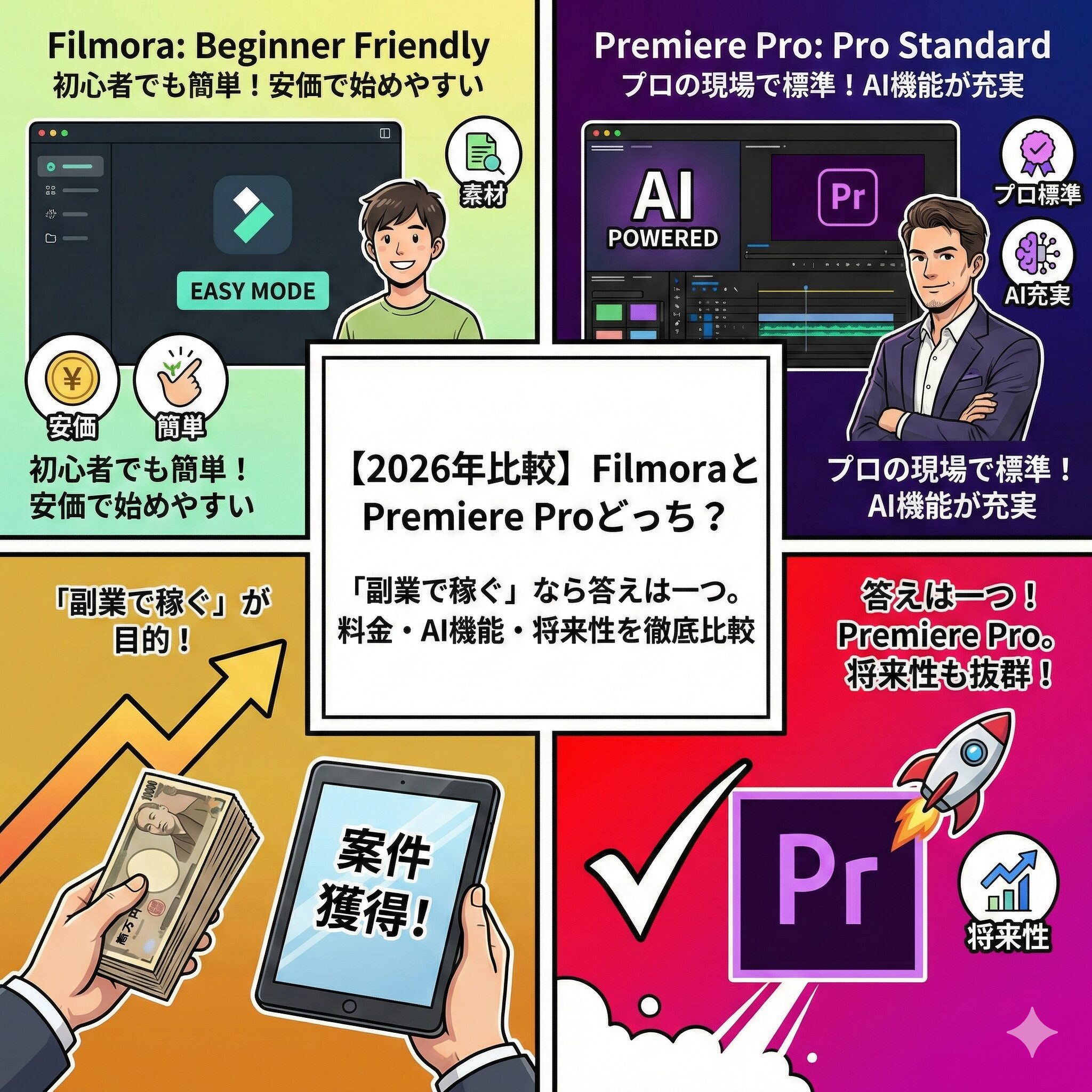 はじめに 「Premiere Proでのカット編集とテロップ入れは完璧になった。でも、単価が5,000円から上がらない…」「もっとリッチな動画を作りたいけど、今のスキルじゃ限界…」 そんな壁にぶつかっ ...