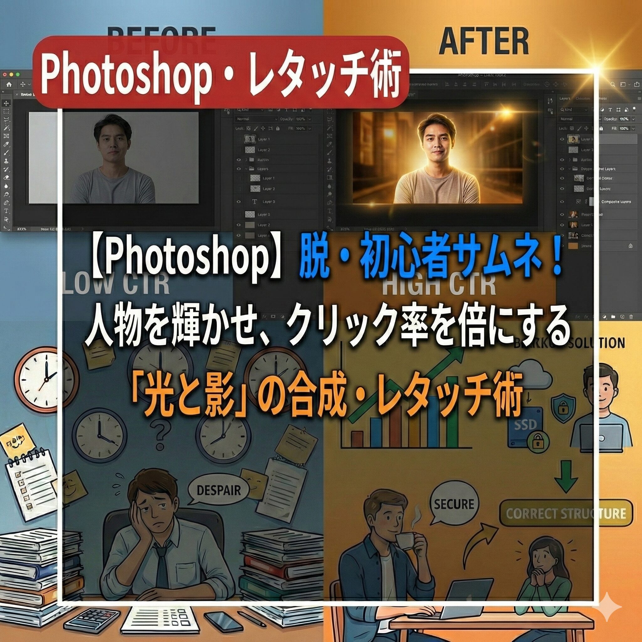 このひと手間をかけるだけで、クリック率(CTR)は数%変わり、再生数は桁違いに跳ね上がります。本記事では、初心者でも今日から実践できる、「人物を主役にするための光と影のレタッチ術」を実行する動作を、ステップバイステップで徹底解説します。