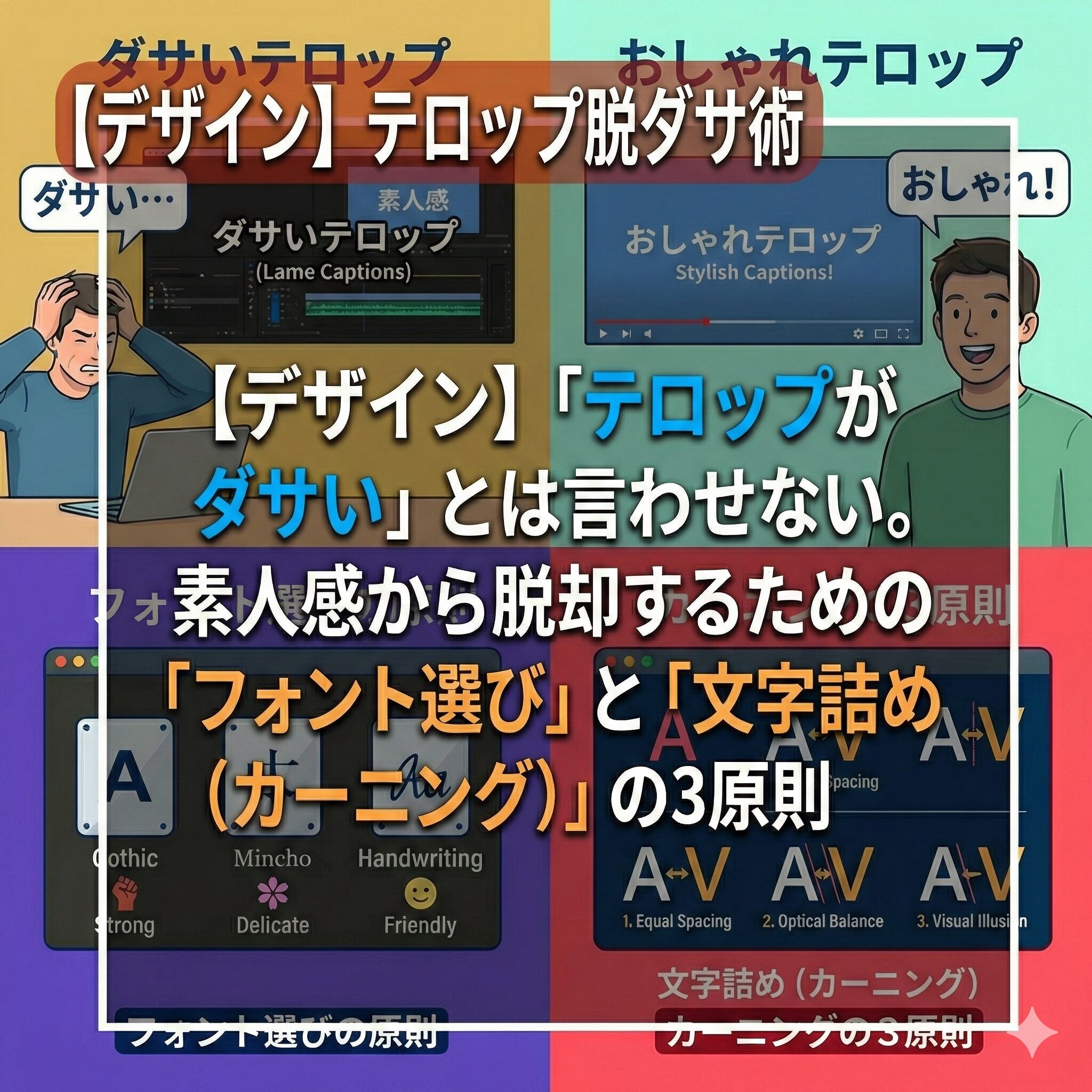 「テレビやYouTubeのテロップって、なんであんなにオシャレで読みやすいの?私が作ると『事務書類』みたいになるんだけど!」その違和感、正解です。