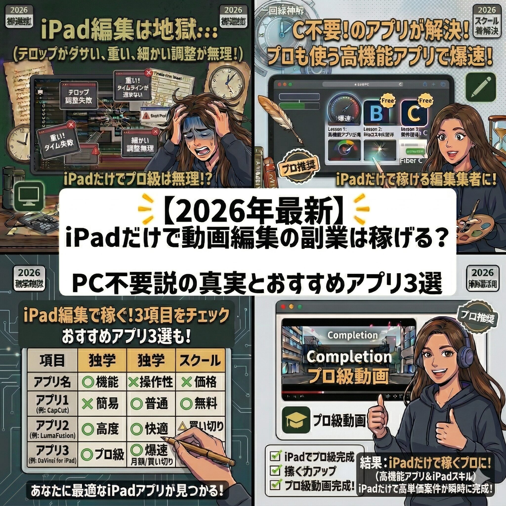 【2026年最新】iPadだけで動画編集の副業は稼げる?PC不要説の真実とおすすめアプリ3選