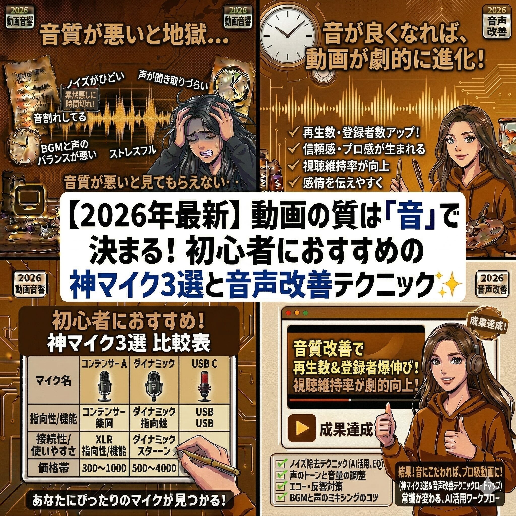 【2026年最新】動画の質は「音」で決まる!初心者におすすめの神マイク3選と音声改善テクニック