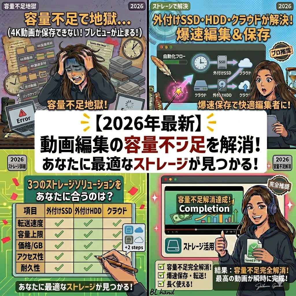 【2026年最新】動画編集の容量不足を解消!外付けSSD・HDD・クラウド徹底比較