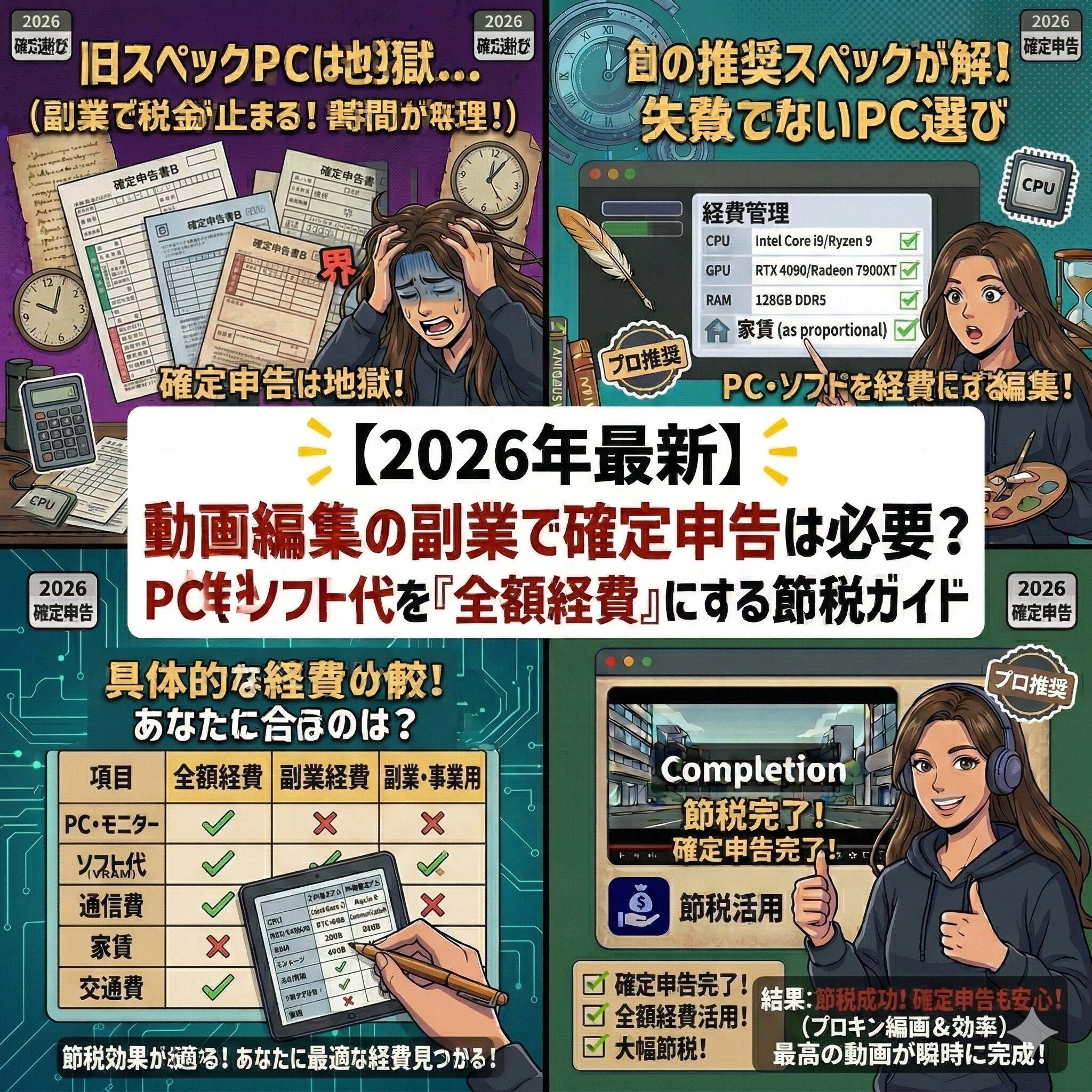 【2026年最新】動画編集の副業で確定申告は必要?PCやソフト代を「全額経費」にする節税ガイド