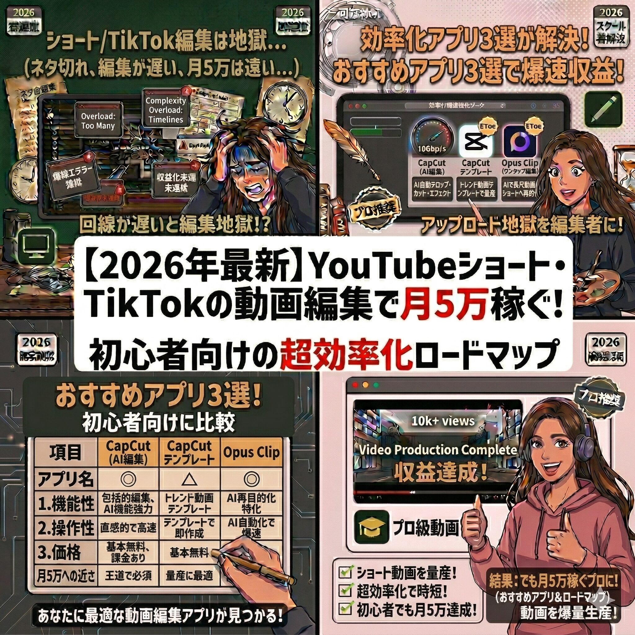 今回は、初心者が『縦型ショート動画』に特化して、最短で月5万円を稼ぐための完全ロードマップを教えるよ!